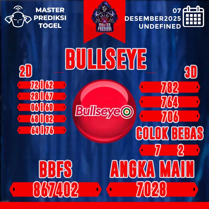 Master Prediksi Bullseye Terbaik Hari Hari Minggu 7 Desember 2025 – Hasil Prediksi Bullseye Hari Ini yang memberikan hasil jackpot besar untuk mempunyai Prediksi Jitu Toto Bullseye Pools kejituan.