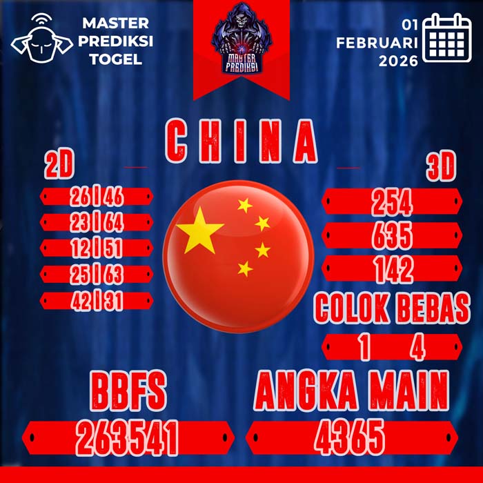 Master Prediksi China Terbaik Hari Hari Minggu 1 Februari 2026 – Hasil kemungkinan yang memberikan hasil jackpot besar untuk mempunyai kejituan. Dengan ini anda akan paham dengan mempunyai kejituan nomor togel.Halaman ini bisa anda gunakan dengan benar untuk mencapai jackpot besar yang tentunya bisa memberikan anda kemenangan besar. Maka oleh itu langsung saja lihat bersama yang terdapat pada situs ini. Untuk mempermudah pencarian Master Prediksi China terbaik ataupun Syair Togel, silaChinaan langsung klik Prediksi China 365 jitu Hari Ini yang Anda ingin lihat :