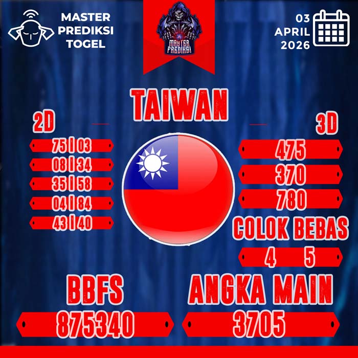 Master Prediksi Taiwan Terbaik Hari Hari Jumat 3 April 2026 – Hasil kemungkinan yang memberikan hasil jackpot besar untuk mempunyai kejituan. Dengan ini anda akan paham dengan mempunyai kejituan nomor togel.Halaman ini bisa anda gunakan dengan benar untuk mencapai jackpot besar yang tentunya bisa memberikan anda kemenangan besar. Maka oleh itu langsung saja lihat bersama yang terdapat pada situs ini. Untuk mempermudah pencarian Master Prediksi Taiwan terbaik ataupun Syair Togel, silaTaiwanan langsung klik Prediksi Taiwan 365 jitu Hari Ini yang Anda ingin lihat :